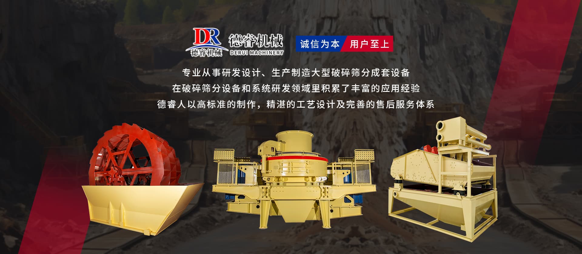“誠信為本,用戶至上”德睿人以高標準的制作,精湛的工藝設計及完善的售后服務體系在破碎篩分設備和系統(tǒng)研發(fā)領域里積累了豐富的應用經驗。借助在破碎行業(yè)的豐富經驗,公司可向客戶提供碎石制砂生產線設計、安裝、調試等交鑰匙工程,同時承接破碎系統(tǒng)的爆破、裝運、破碎等生產運行總承包。